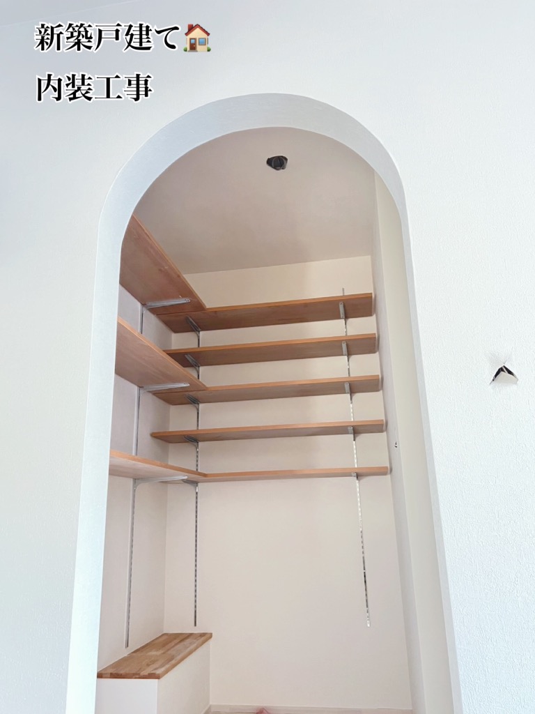 目を引くのは、曲線が美しいアーチ壁のパントリー✨